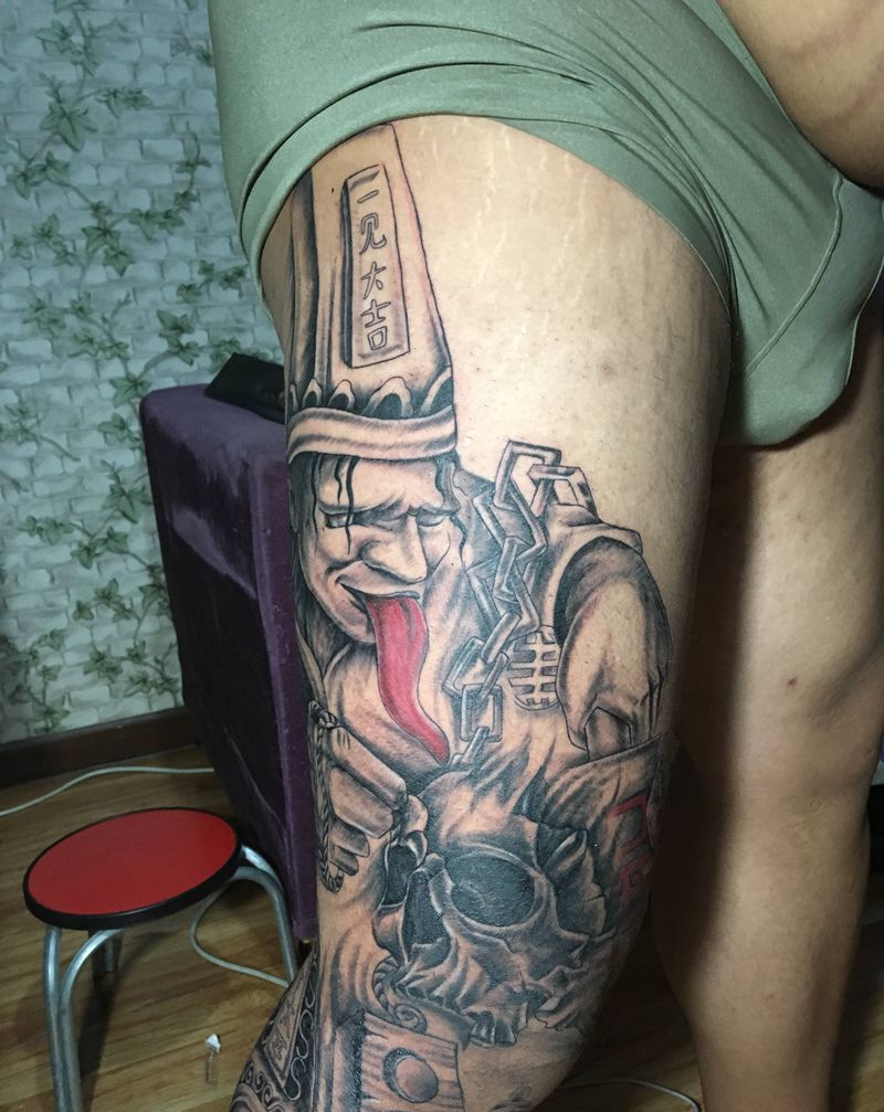 当前位置: 首页 >山东省威海市纹身店-大鹏刺青纹身图案>阴曹地府纹身图片_腿部新传统纹身图案