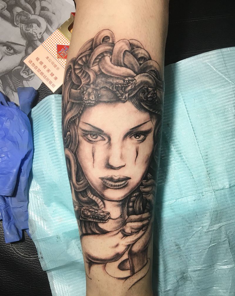 美杜莎纹身图片_腿部纹身图案