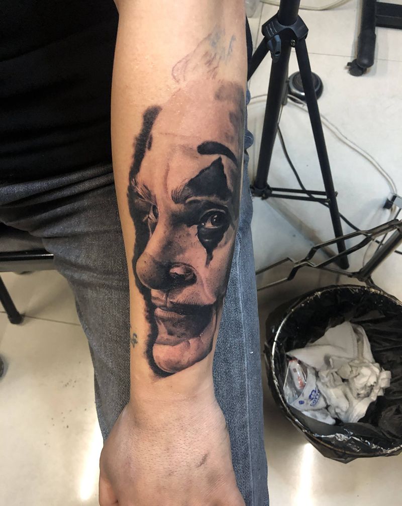 当前位置: 首页 >山东省济宁市纹身店-不言刺青纹身图案>小丑纹身图片_手臂纹身图案