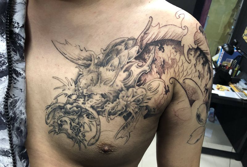 当前位置: 首页 >山东省济宁市纹身店-不言刺青纹身图案>鳌鱼纹身图片_手臂胸部新传统纹身图案