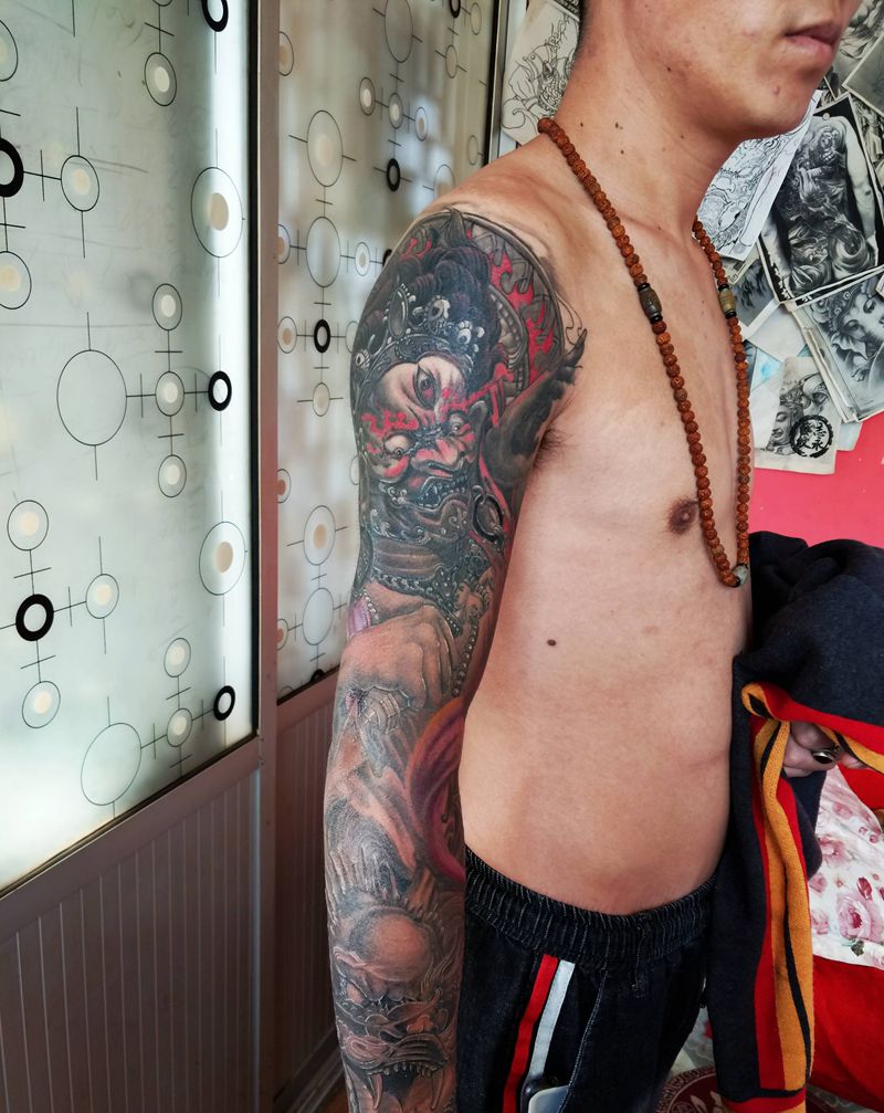 当前位置: 首页 >山东省泰安市纹身店-墨功刺青纹身图案>大黑天纹身图片_手臂新传统纹身图案