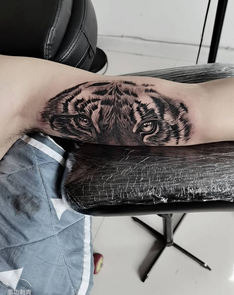 当前位置: 首页 >山东省泰安市纹身店-墨功刺青纹身图案>虎头纹身图片_手臂欧美写实纹身图案