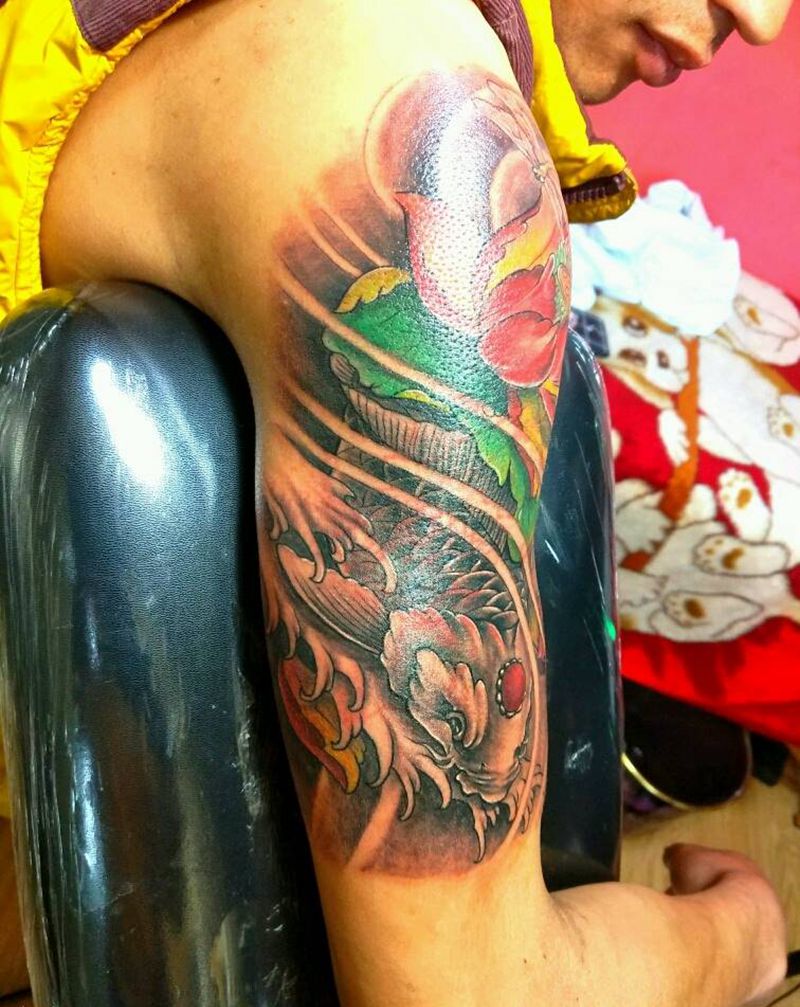 • T网红王老大花腿龙纹身图片_腿部新传统纹身图案