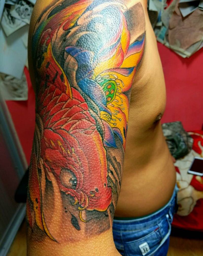 • T网红王老大花腿龙纹身图片_腿部新传统纹身图案
