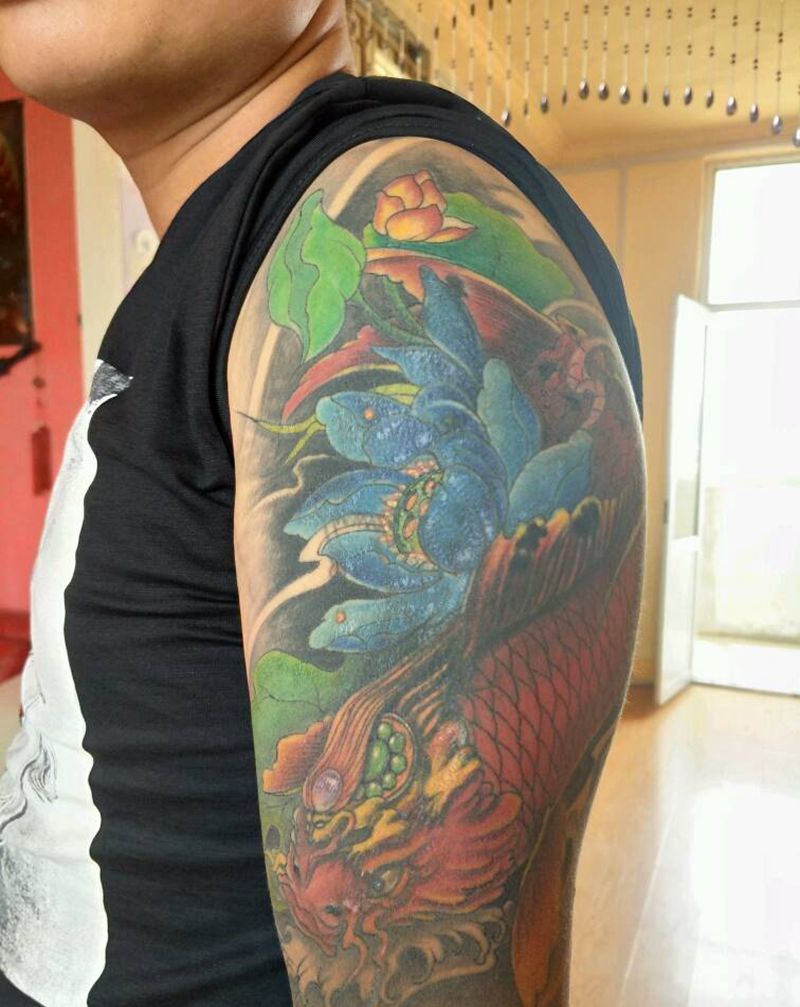 一组15张莲花纹身手