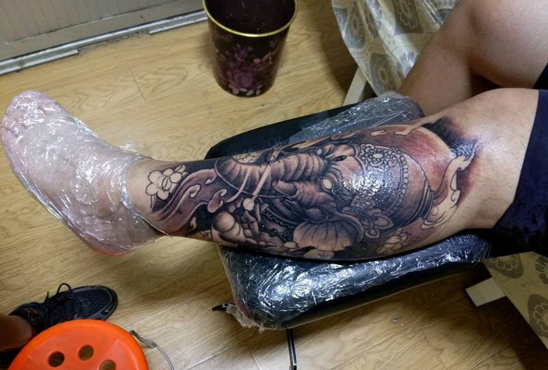 当前位置: 首页 >山东省泰安市纹身店-墨功刺青纹身图案>象神纹身图片