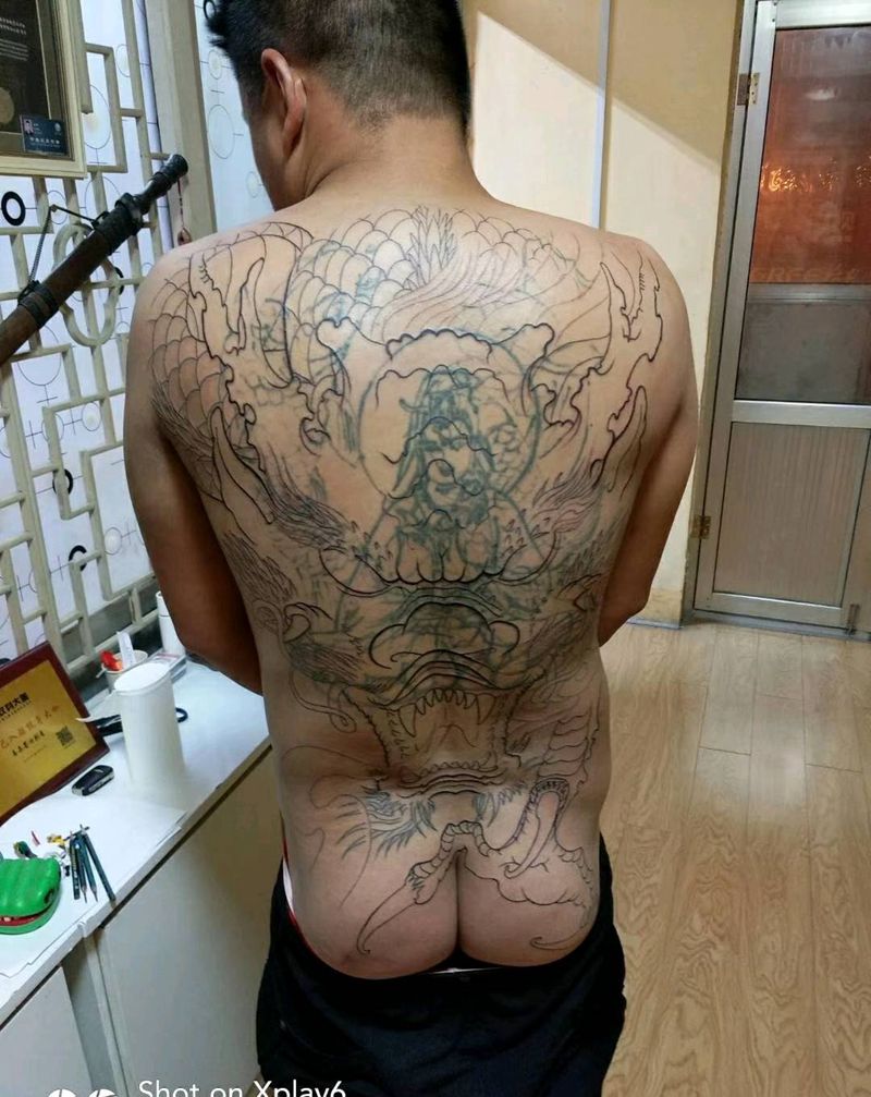 当前位置: 首页 >山东省泰安市纹身店-墨功刺青纹身图案>遮盖开始纹身图片_背部老传统纹身图案