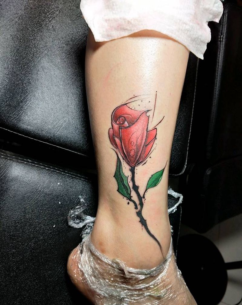 遮盖纹身图片_腿部水墨纹身图案
