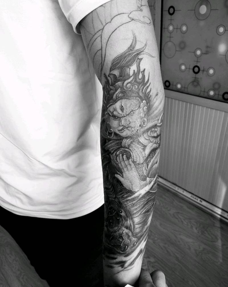 当前位置: 首页 >山东省泰安市纹身店-墨功刺青纹身图案>二郎神纹身图片