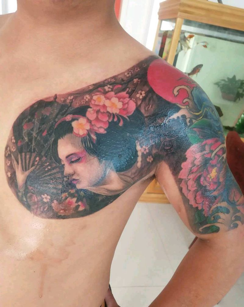 • 男性大花胸_42张优秀的男性大花胸纹身图案图片