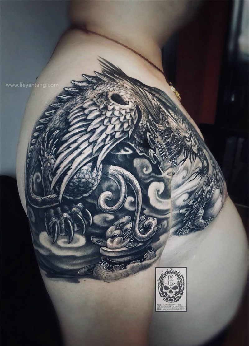 • 纹身吧推荐的披肩图腾半胛纹身图案作品展示
