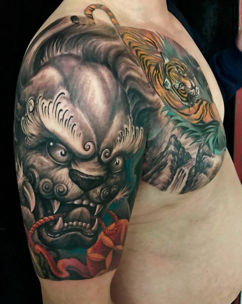 当前位置: 首页 >山东省济宁市纹身店-东龙纹身纹身图案>唐狮纹身图片_肩部新传统纹身图案
