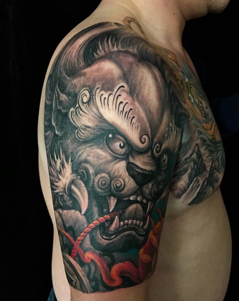当前位置: 首页 >山东省济宁市纹身店-东龙纹身纹身图案>唐狮纹身图片_肩部新传统纹身图案