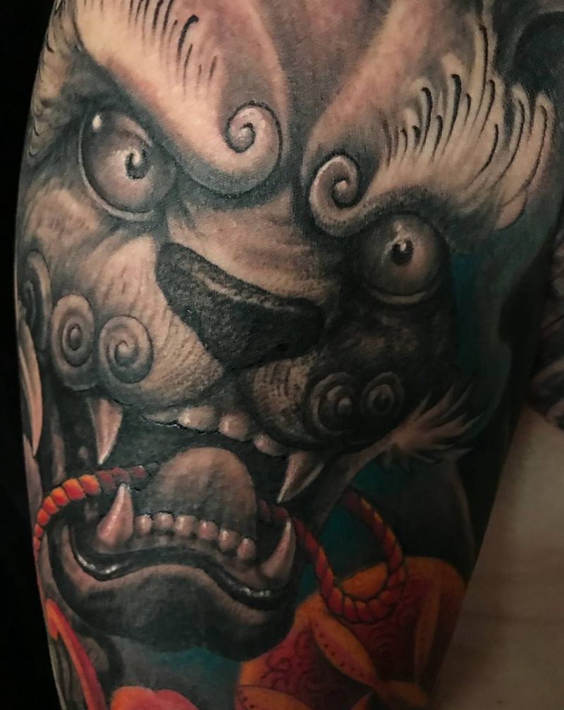 当前位置: 首页 >山东省济宁市纹身店-东龙纹身纹身图案>唐狮纹身图片_肩部新传统纹身图案