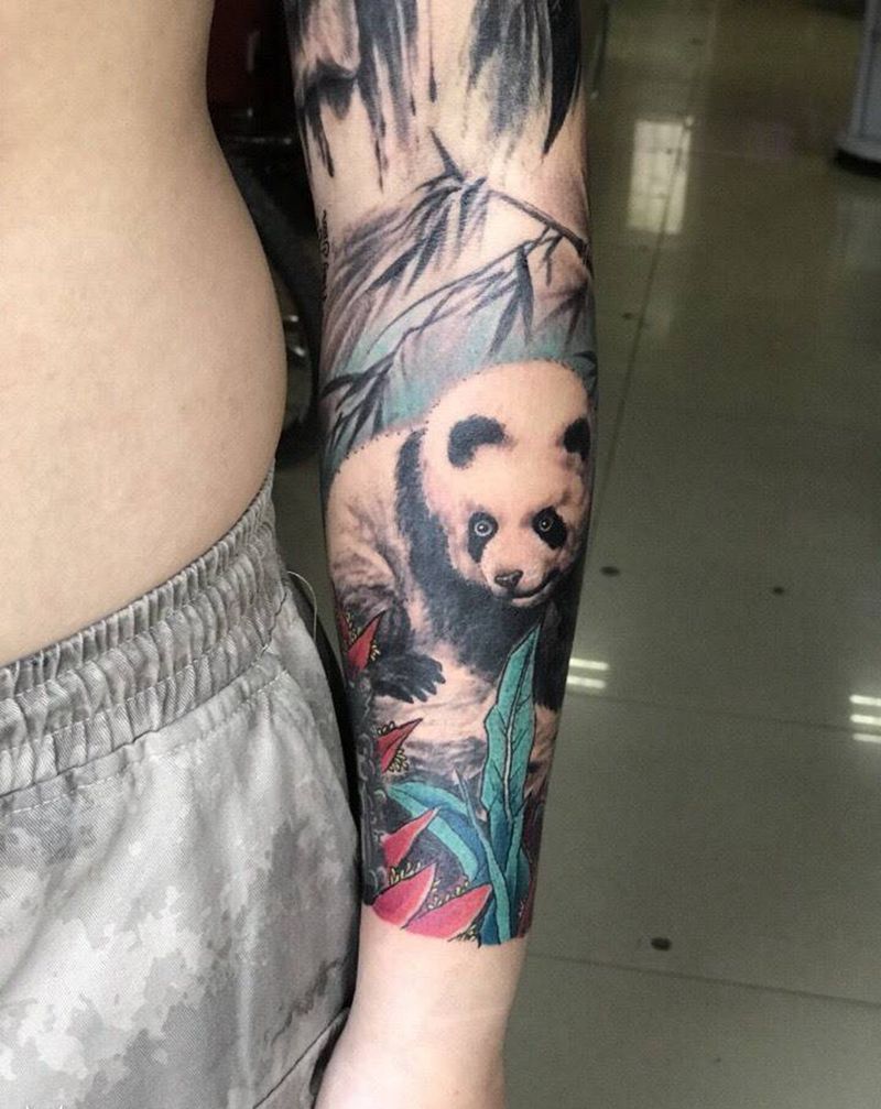 当前位置: 首页 >山东省济宁市纹身店-东龙纹身纹身图案>印第安人和熊猫纹身图片_手臂欧美写实水墨纹身图案