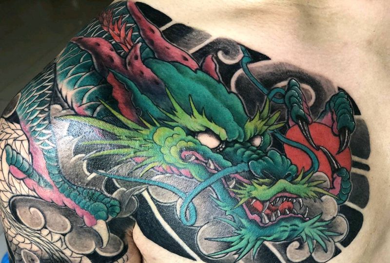 • T云龙九郎纹身图片_背部老传统云龙九郎纹身图案