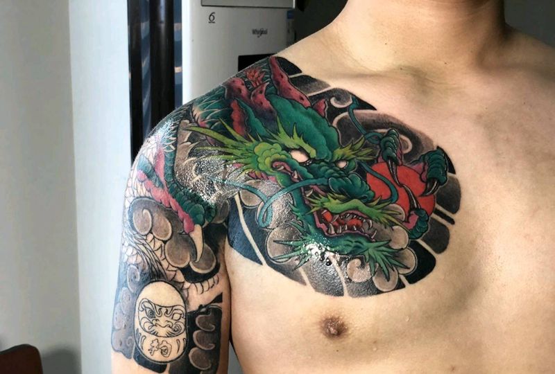 当前位置: 首页 >山东省泰安市纹身店-墨功刺青纹身图案>半甲纹身图片_肩部胸部老传统纹身图案