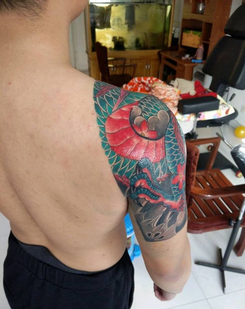• T网红王老大花腿龙纹身图片_腿部新传统纹身图案