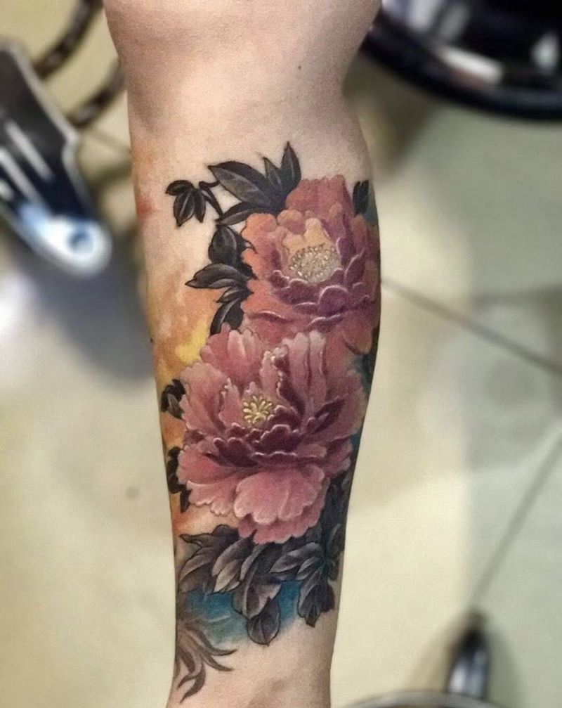 凤凰牡丹纹身图片_成品腿部传统动物原创纹身图案