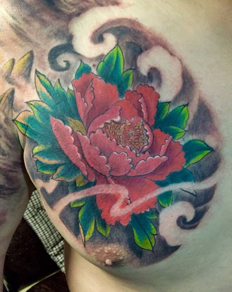 • 女性大花胸纹身_43张霸气漂亮的女性大花胸纹身图案作品