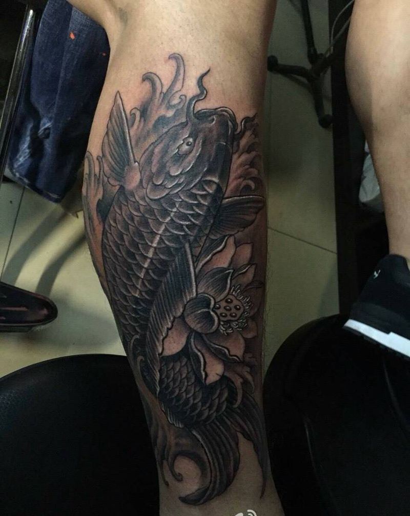 当前位置: 首页 >山东省济宁市纹身店-东龙纹身纹身图案>小腿鲤鱼纹身图片
