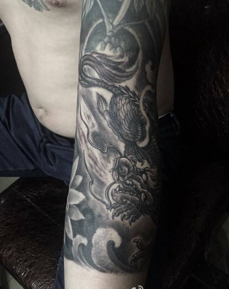 当前位置: 首页 >山东省济宁市纹身店-东龙纹身纹身图案>花臂麒麟花臂纹身图片