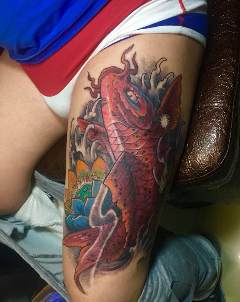 当前位置: 首页 >山东省济宁市纹身店-东龙纹身纹身图案>大腿鲤鱼纹身图片