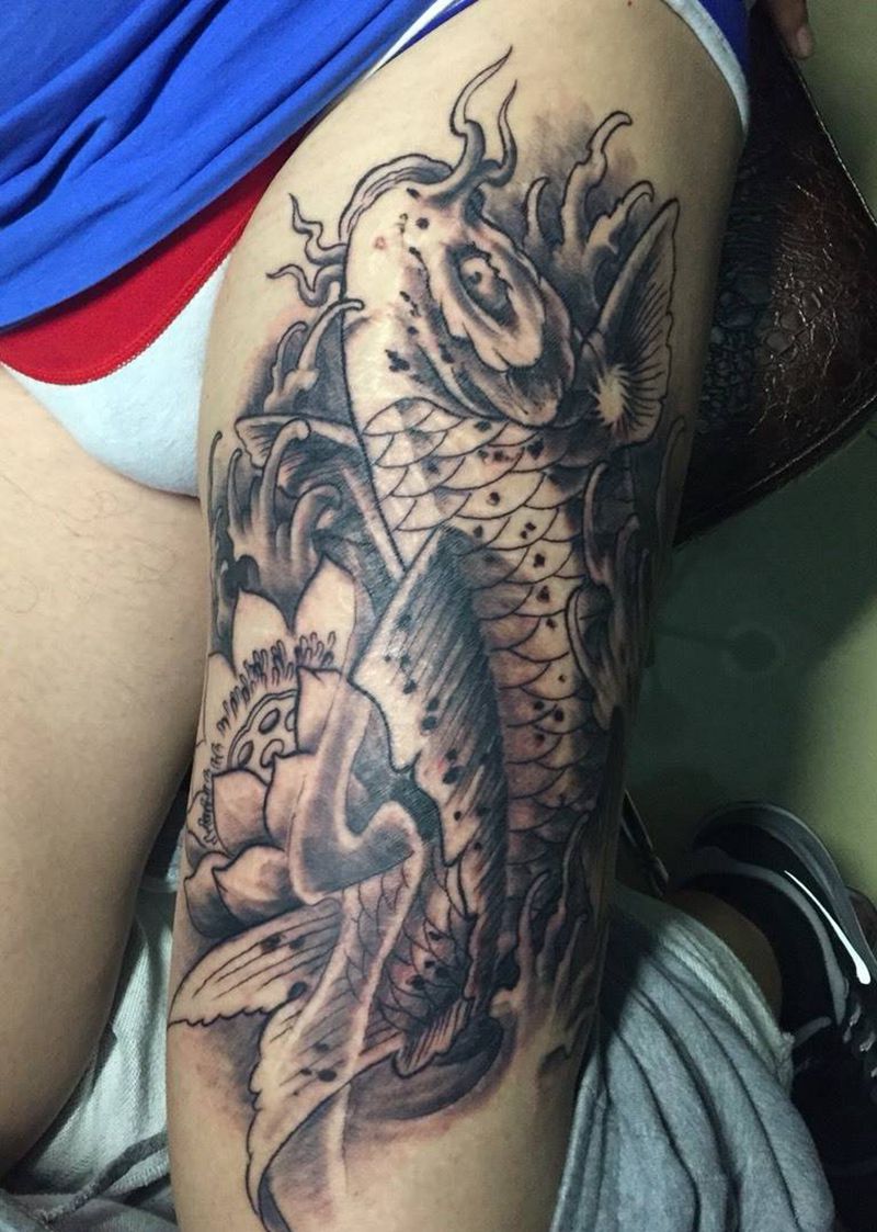 当前位置: 首页 >山东省济宁市纹身店-东龙纹身纹身图案>大腿鲤鱼纹身图片