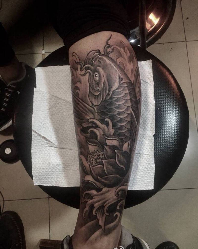 当前位置: 首页 >山东省济宁市纹身店-东龙纹身纹身图案>小腿鲤鱼纹身图片