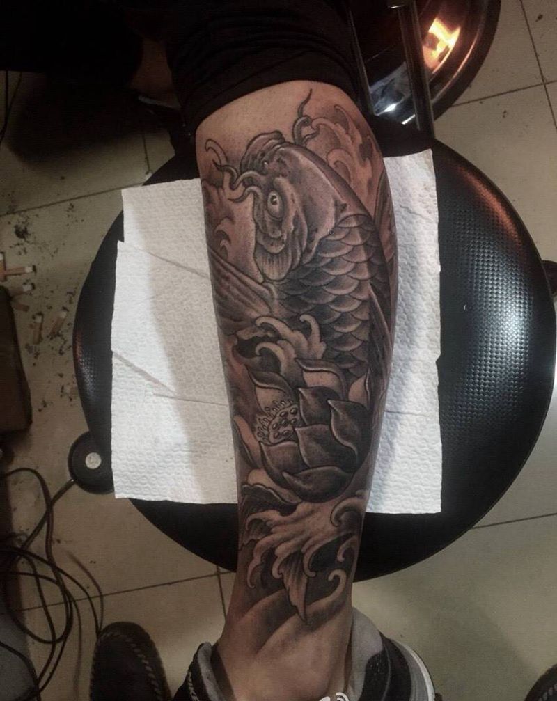 当前位置: 首页 >山东省济宁市纹身店-东龙纹身纹身图案>小腿鲤鱼纹身图片