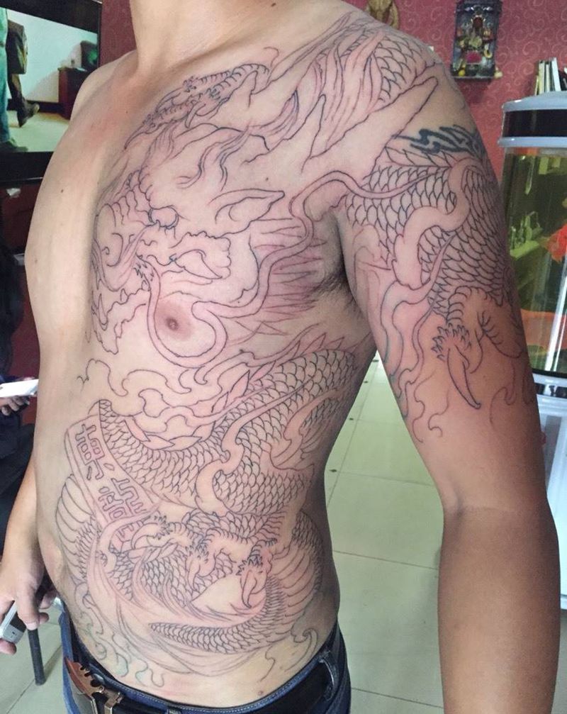 当前位置: 首页 >山东省济宁市纹身店-东龙纹身纹身图案>半胛龙纹身图片