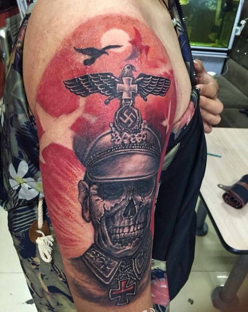 当前位置: 首页 >山东省济宁市纹身店-东龙纹身纹身图案>纳粹题材上臂纹身图片