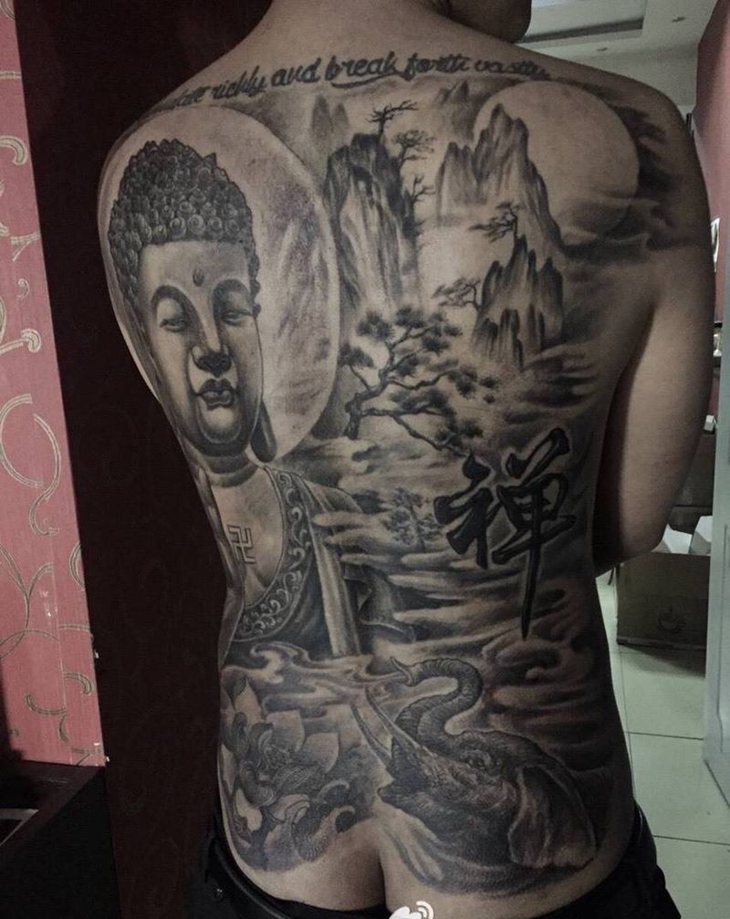 当前位置: 首页 >山东省济宁市纹身店-东龙纹身纹身图案>象神护佛纹身图片