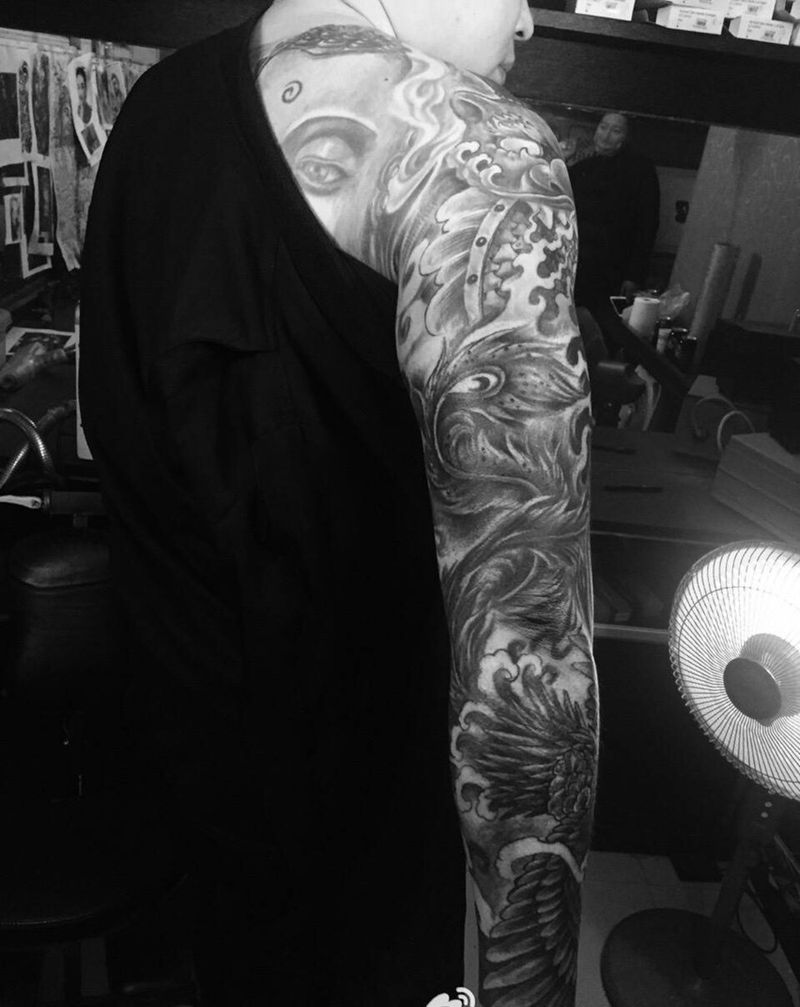 当前位置: 首页 >山东省济宁市纹身店-东龙纹身纹身图案>花臂凤凰纹身图片