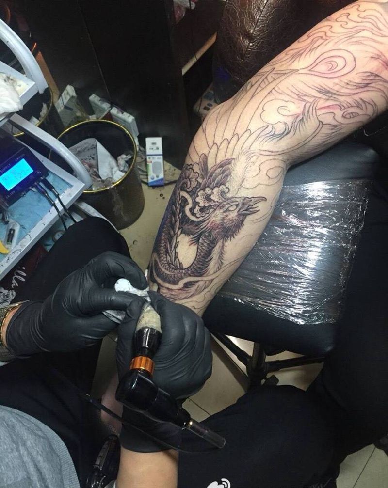 当前位置: 首页 >山东省济宁市纹身店-东龙纹身纹身图案>花臂凤凰纹身图片