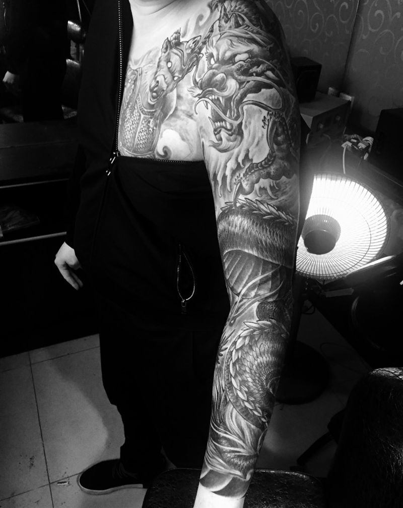 当前位置: 首页 >山东省济宁市纹身店-东龙纹身纹身图案>花臂龙纹身图片
