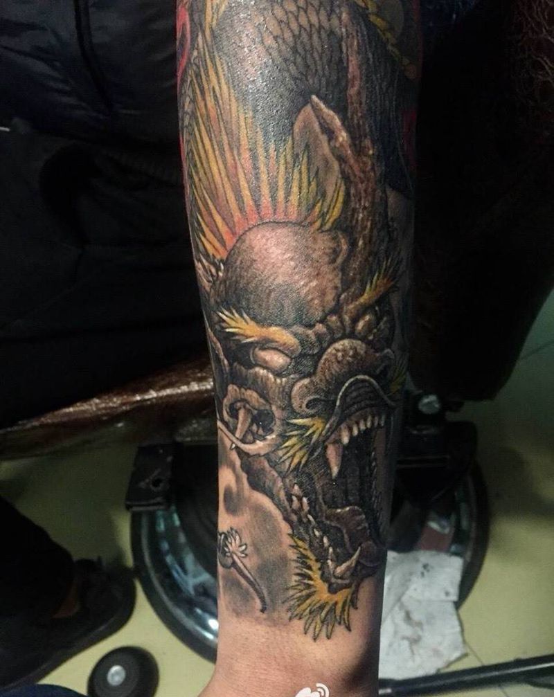 • T网红王老大花腿龙纹身图片_腿部新传统纹身图案