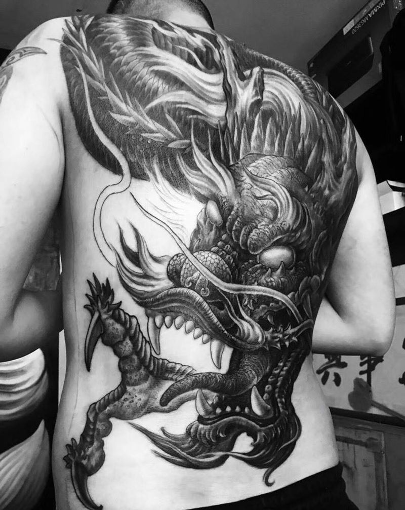 大龙满背纹身纹身图片_成品背部传统动物纹身图案