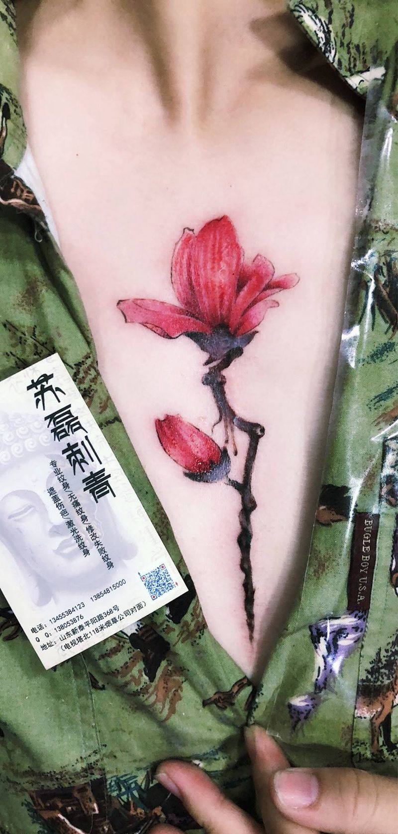 • 女性大花胸纹身_43张霸气漂亮的女性大花胸纹身图案作品