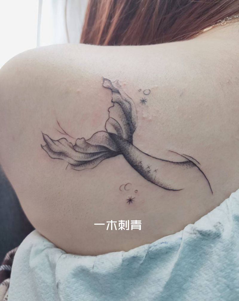 美人鱼尾纹身图片_肩部点刺纹身图案