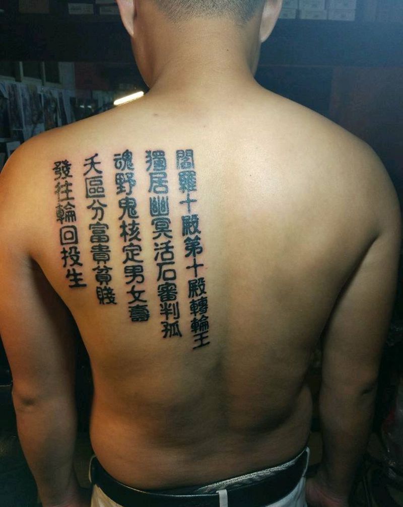 当前位置: 首页 >山东省济宁市纹身店-邹城一木刺青纹身图案>经文纹身图片_背部字符成品纹身图案
