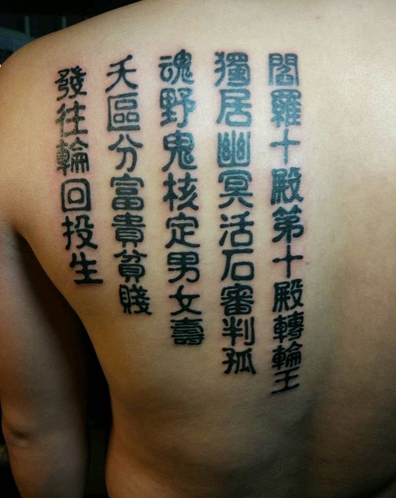 当前位置: 首页 >山东省济宁市纹身店-邹城一木刺青纹身图案>经文纹身图片_背部字符成品纹身图案