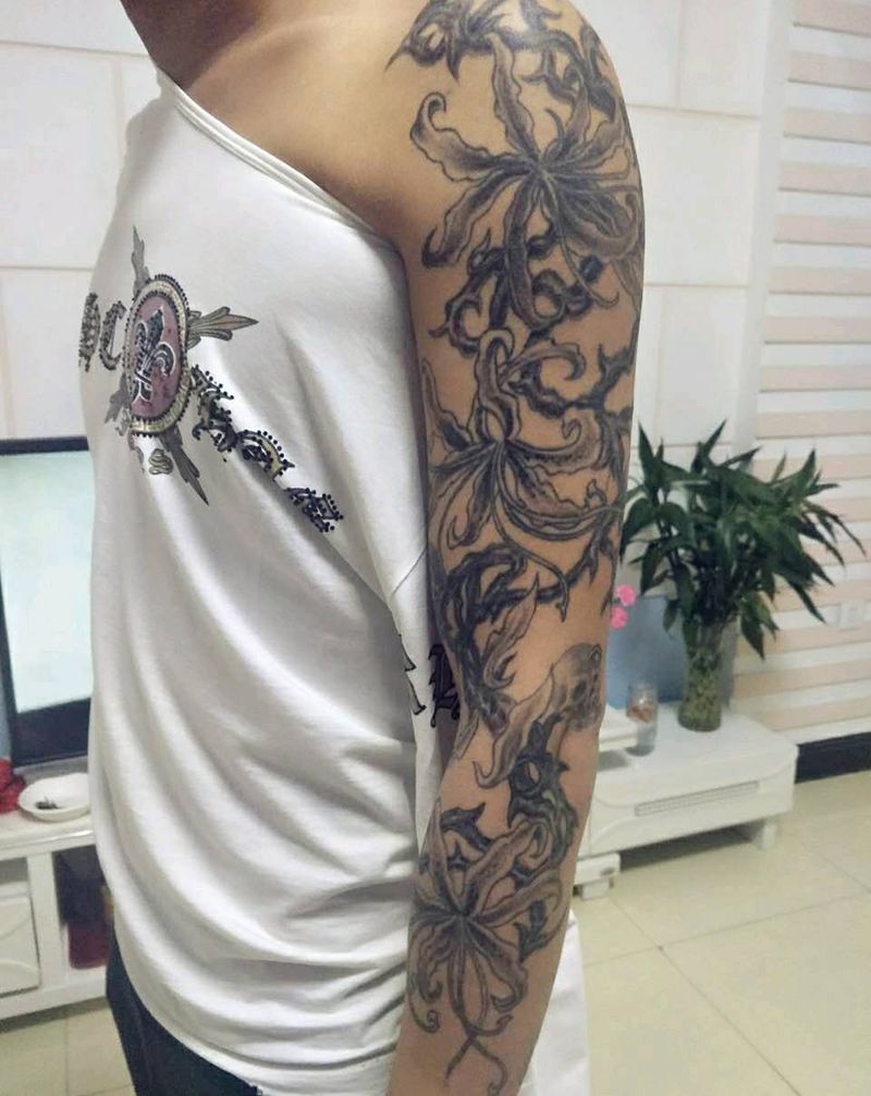 当前位置: 首页 >山东省济宁市纹身店-邹城一木刺青纹身图案>彼岸花纹身图片_手臂植物成品纹身图案