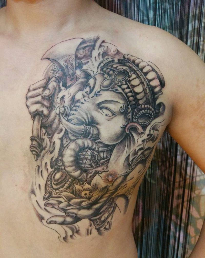 当前位置: 首页 >山东省济宁市纹身店-邹城一木刺青纹身图案>象神纹身图片_胸部动物宗教成品纹身图案