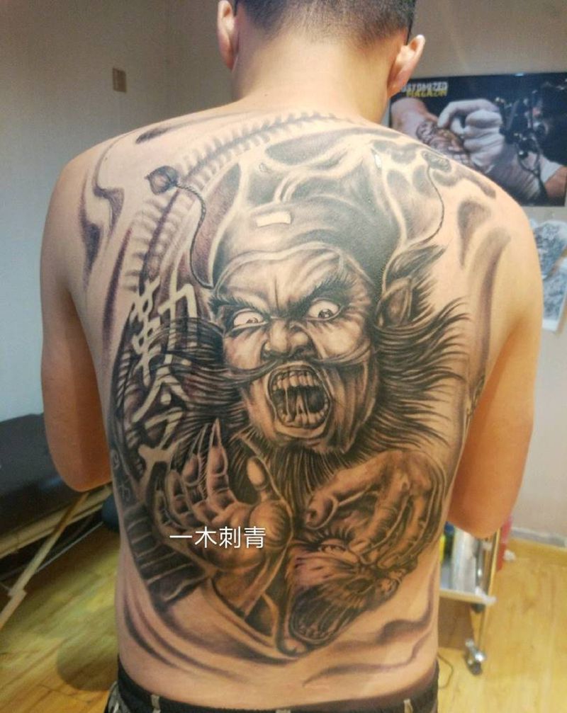 当前位置: 首页 >山东省济宁市纹身店-邹城一木刺青纹身图案>钟馗捉鬼纹身图片