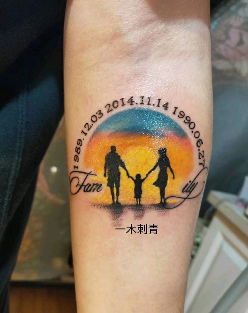 当前位置: 首页 >山东省济宁市纹身店-邹城一木刺青纹身图案>三口之家纹身图片_手臂水彩纹身图案