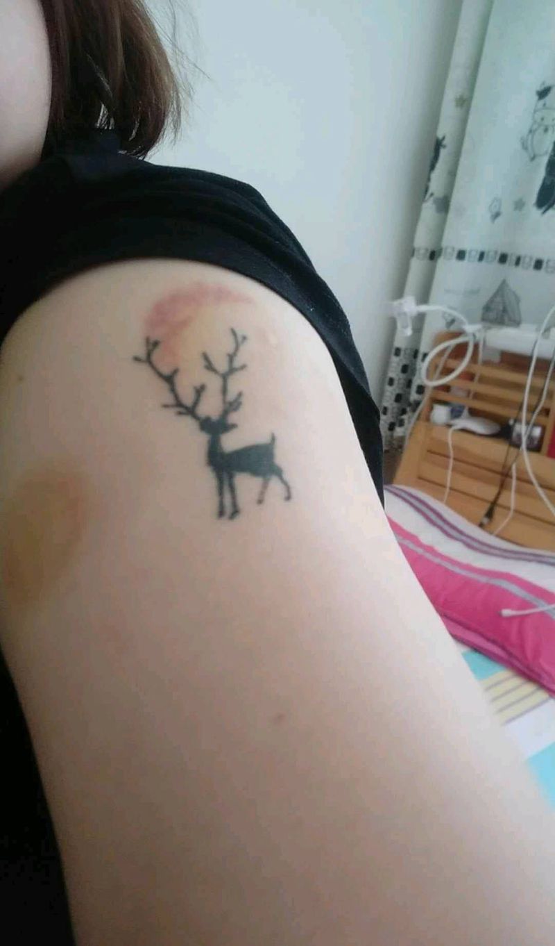 当前位置: 首页 >山东省济宁市纹身店-邹城一木刺青纹身图案>遮盖小鹿图腾纹身图片_手臂欧美写实纹身图案