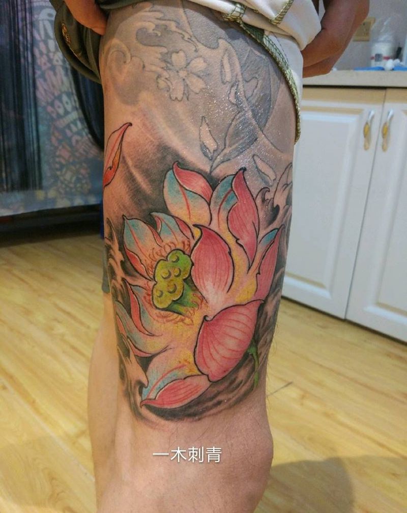 当前位置: 首页 >山东省济宁市纹身店-邹城一木刺青纹身图案>彩色荷花纹身图片_腿部传统植物成品纹身图案