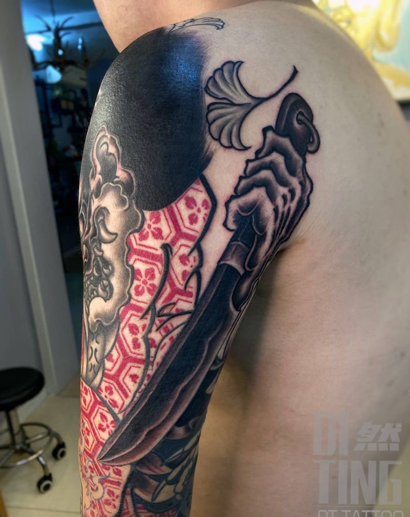 未完待续纹身图片_肩部手臂新传统生首般若纹身图案