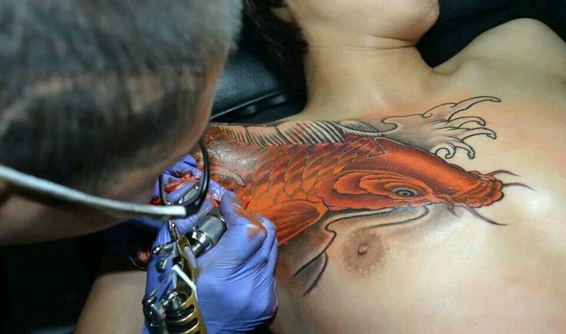 • 女性大花胸纹身_43张霸气漂亮的女性大花胸纹身图案作品